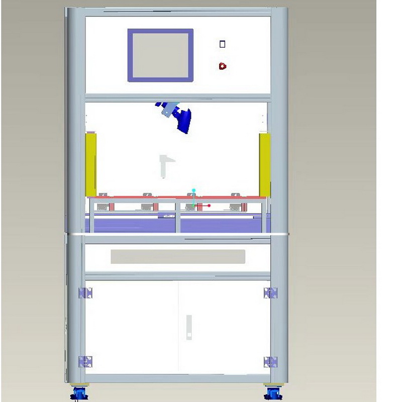 測試流程:將最多四個樣品掃碼後放入樣品仿形夾具內,下壓氣缸固定樣品,測試軸對第一個進行測試,旋轉軸旋轉側麵調整距離後進行側麵按鍵測試,測試完成後提示OK或NG。