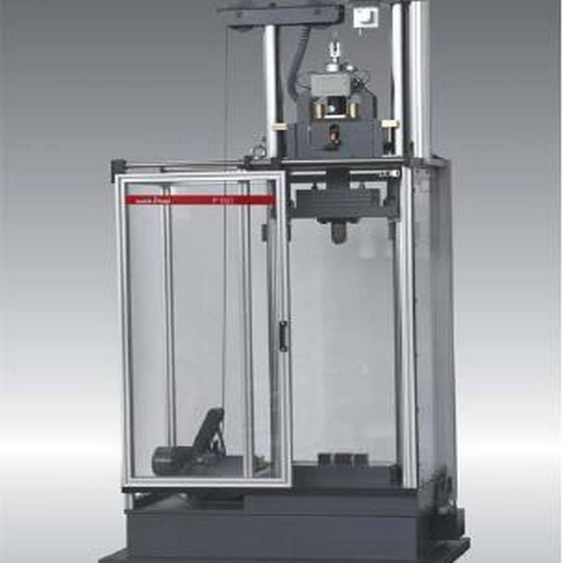 落錘試驗機主要由導軌、底座、試樣安裝座、錘頭、電氣控製、安全裝置及提升機構等部分組成。試驗機導軌與底座垂直,底座有足夠的剛性,導軌之間保持平行以便引導錘頭自由下落,通過鋼絲繩升降動橫梁,實現錘體的上下運動。落錘衝擊可預置衝擊能量,控製提升高度。電動提升機構在機架的上方,這樣整機外形緊湊(具體設計時根據高度情況也可能把電動提錘機構放置在地麵上)。電氣控製的衝擊能量預置係統,通過預置提錘高度可以得到試驗能量,試驗機自動提升錘體到所需要的高度。同時可實現對安全防護裝置的監控等。